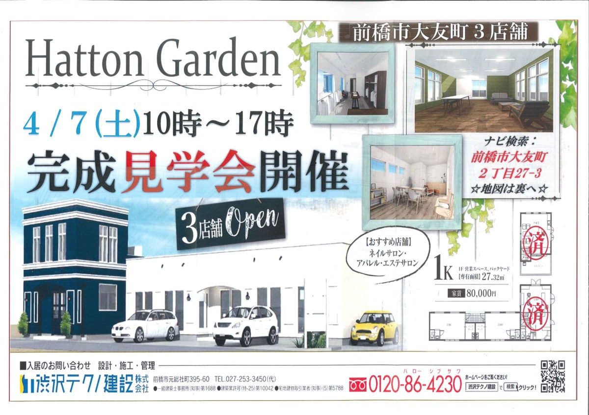 今回は、群馬県前橋市大友町に完成したテナント Hatton Garden(ハットン ガーデン)のご紹介と完成見学会をご案内いたします。